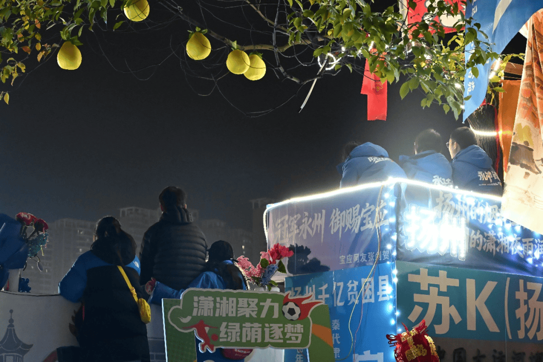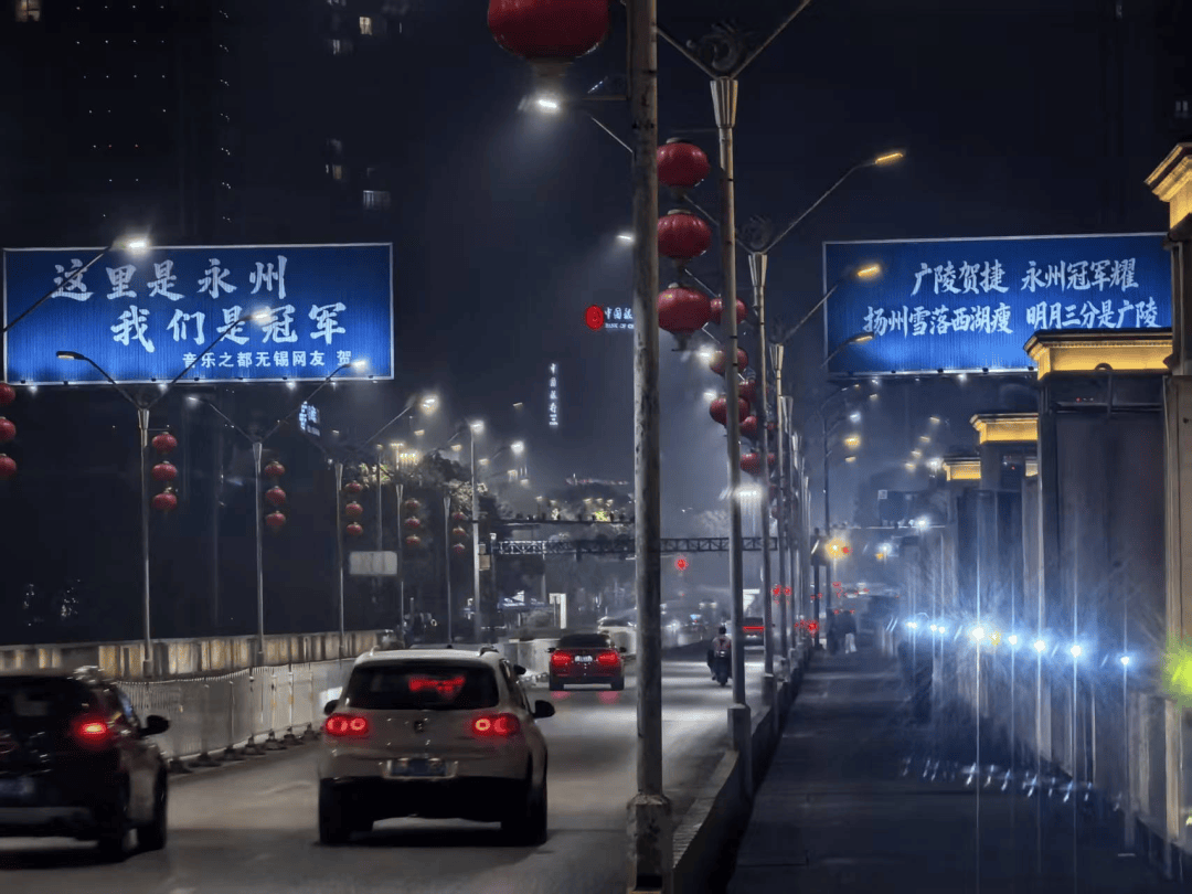 “永州蓝”的冲锋衣上,醒目地印着“永冲锋”的豪情;广告牌、户外屏幕,都“跳动”着“我们是冠军”“湘超冠军城”的自信。