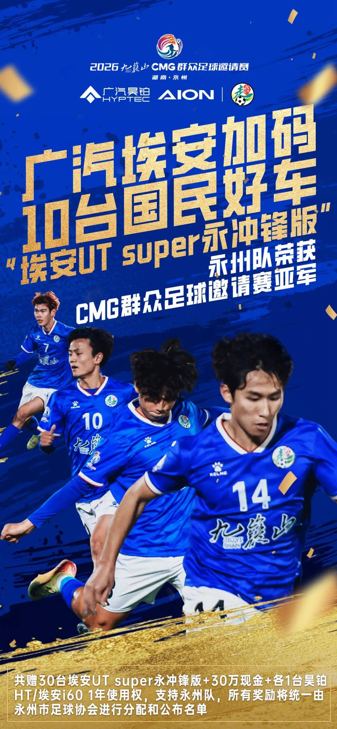 埃安更进一步承诺:若永州队在2026年“湘超”联赛中成功卫冕,品牌将继续履行奖励计划,让这份源于拼搏的荣耀持续传承。